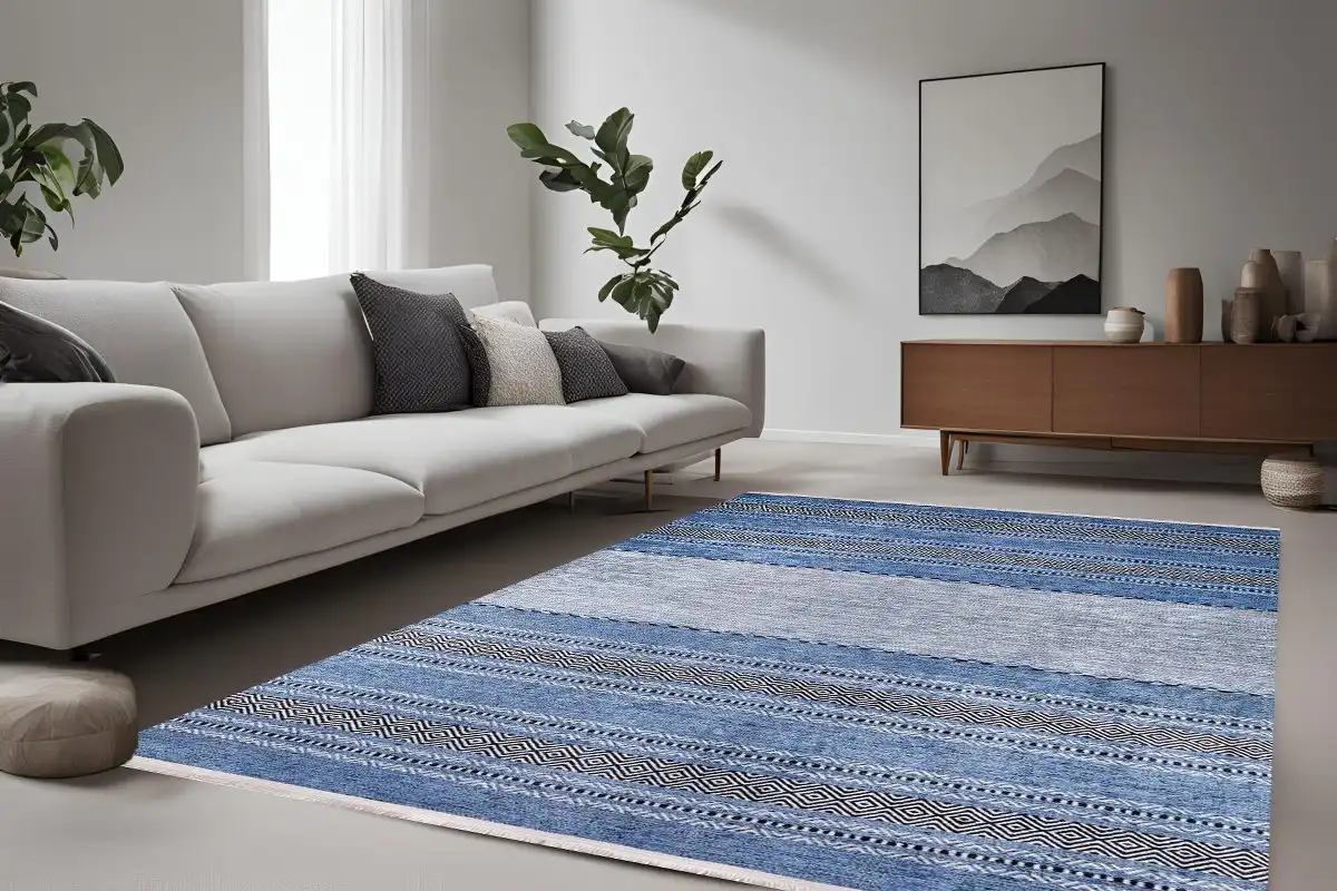 Halı Atölyesi’nin özel tasarım yıkanabilir halıları, şıklık, dayanıklılık ve konforu bir araya getirerek uzun ömürlü kullanım sunar. Yoğun kullanıma uygun düşük hav yüksekliği sayesinde dayanıklılığı artırılmıştır. %70 pamuk ve %30 polyester karışımıyla üretilen bu halı, makinede yıkanabilir yapısıyla kolayca temizlenir ve yıllarca estetik görünümünü korur. Patentli kaymaz tabanı güvenliği sağlarken, hipoalerjenik ve toz tutmayan dokusu sağlıklı bir yaşam alanı oluşturur. Evcil hayvan dostu yapısıyla dört mevsim konfor sunan bu halı, her yaşam alanına mükemmel uyum sağlar.
