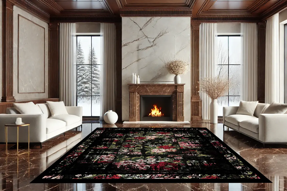 Barok Gül Yıkanabilir Halı