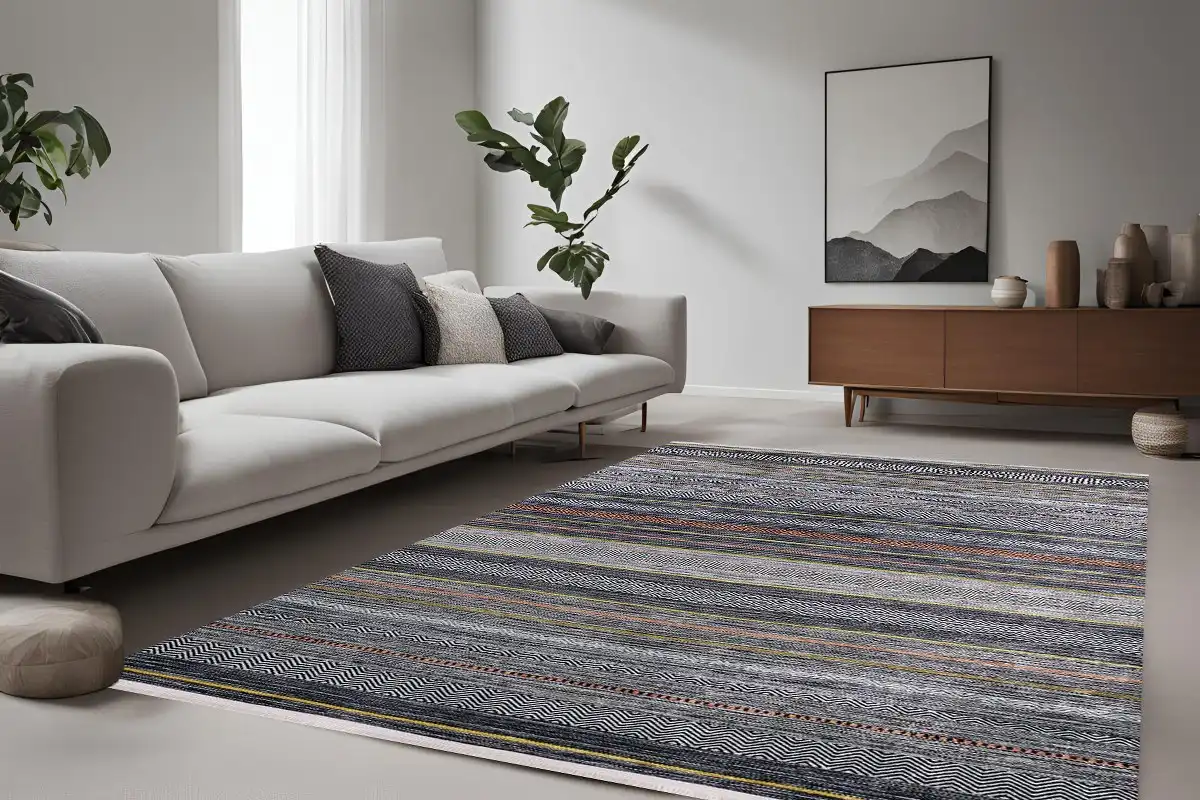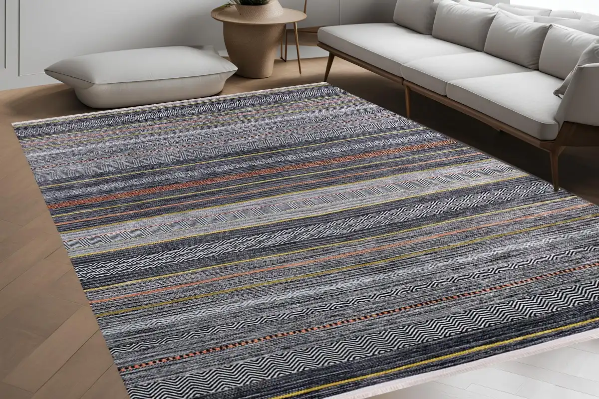 Etnik Çizgi Desenli Yıkanabilir Halı