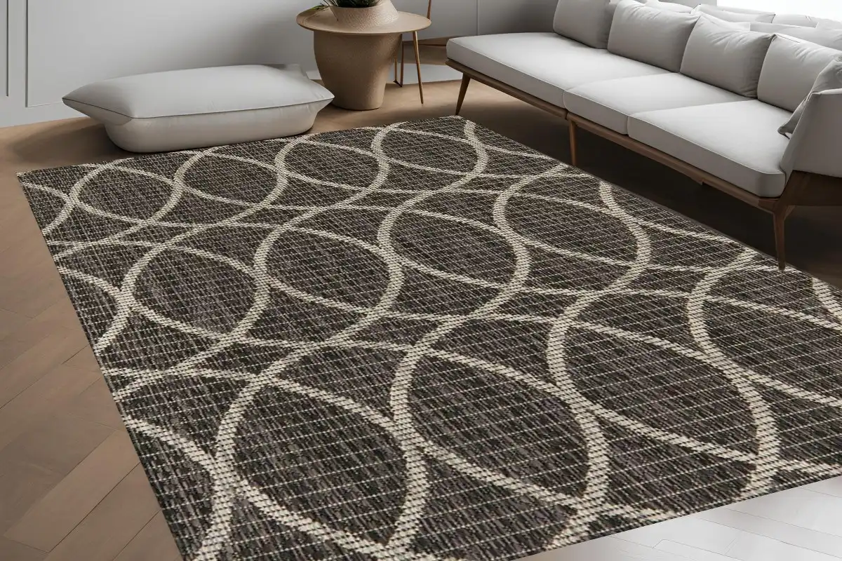 Bu halının gri ve bronz-kahverengi tonları, farklı dekorasyon tarzlarına uyum sağlayan sofistike ve çok yönlü bir zemin oluşturur.