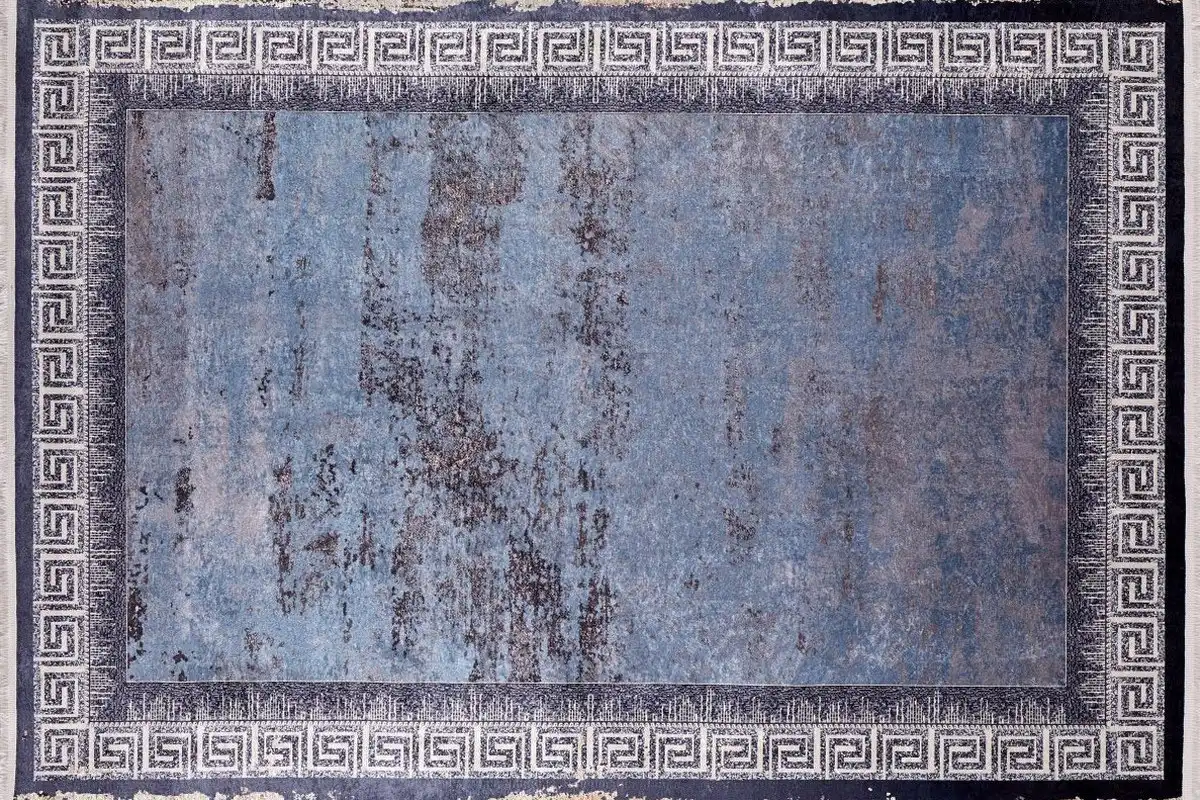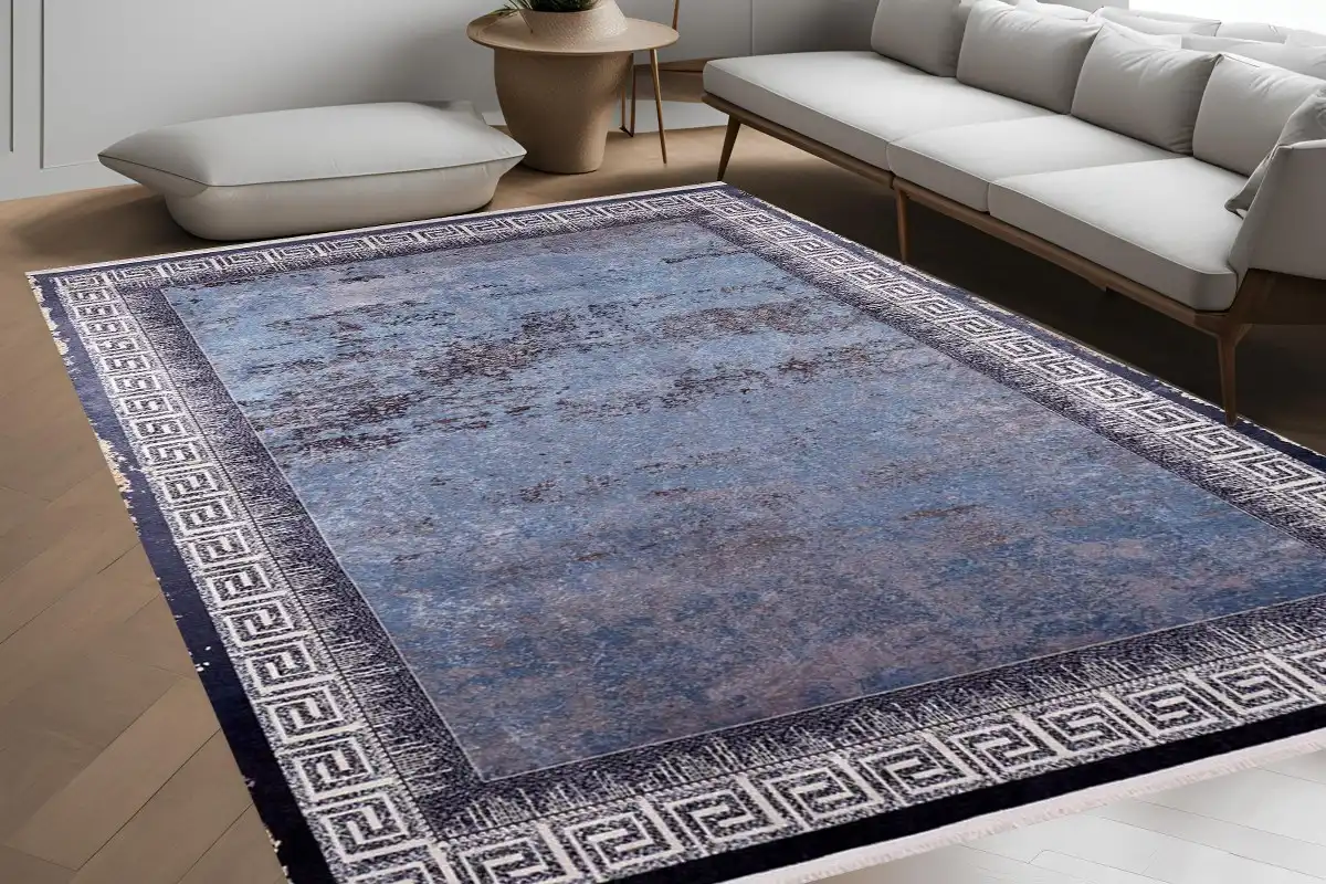 Mavi Klasik Kenarlı Yıkanabilir Halı