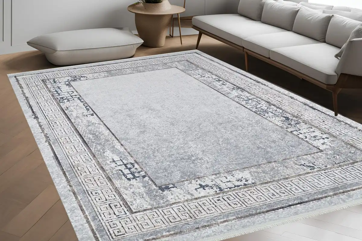 Bu halının gri ve bronz-kahverengi tonları, farklı dekorasyon tarzlarına uyum sağlayan sofistike ve çok yönlü bir zemin oluşturur.