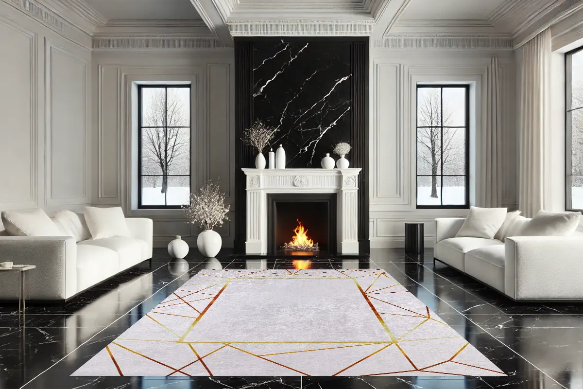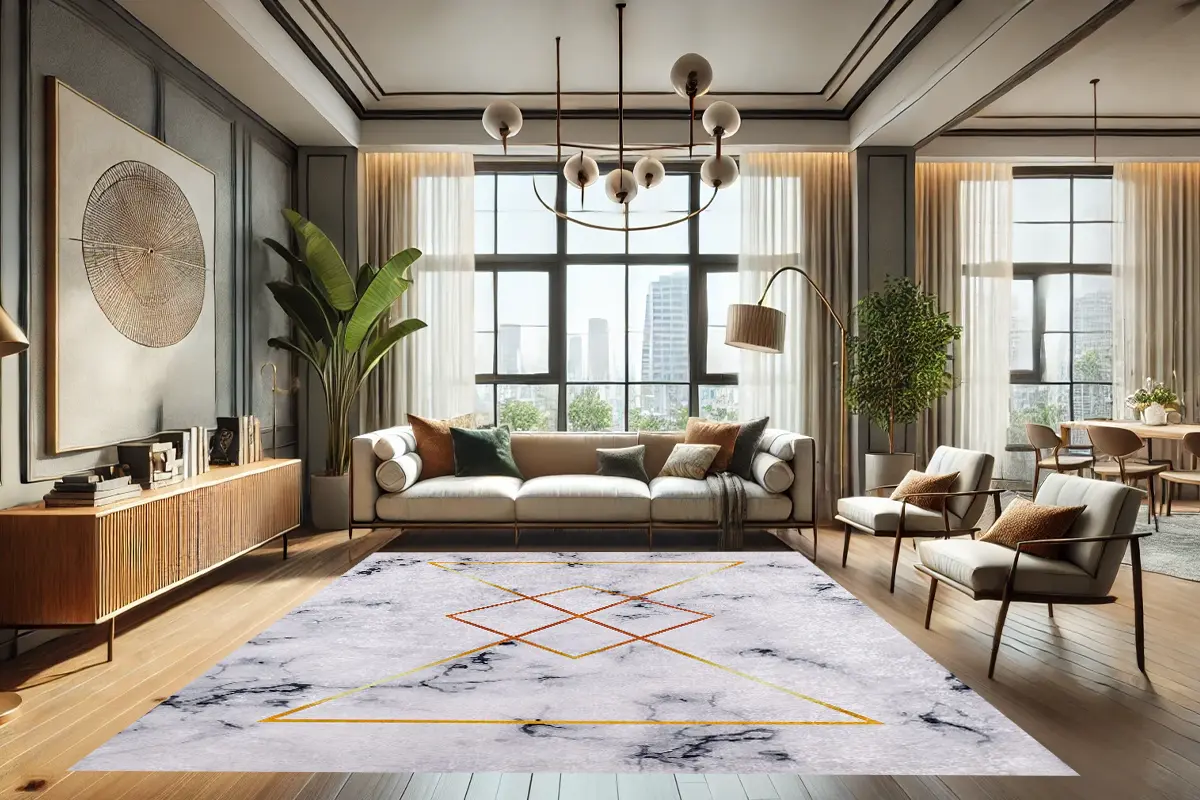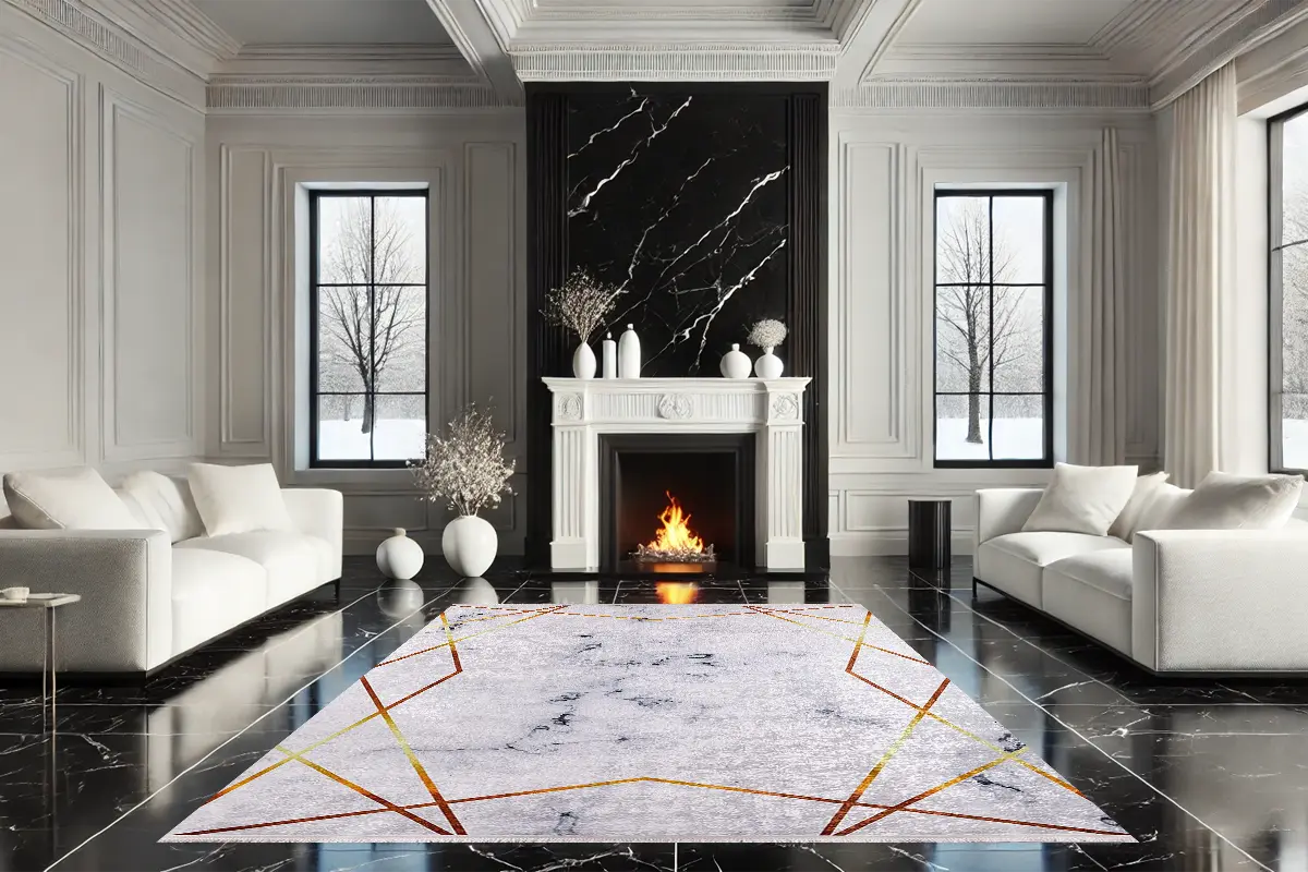 Geometrik Mermer Efektli Yıkanabilir Halı