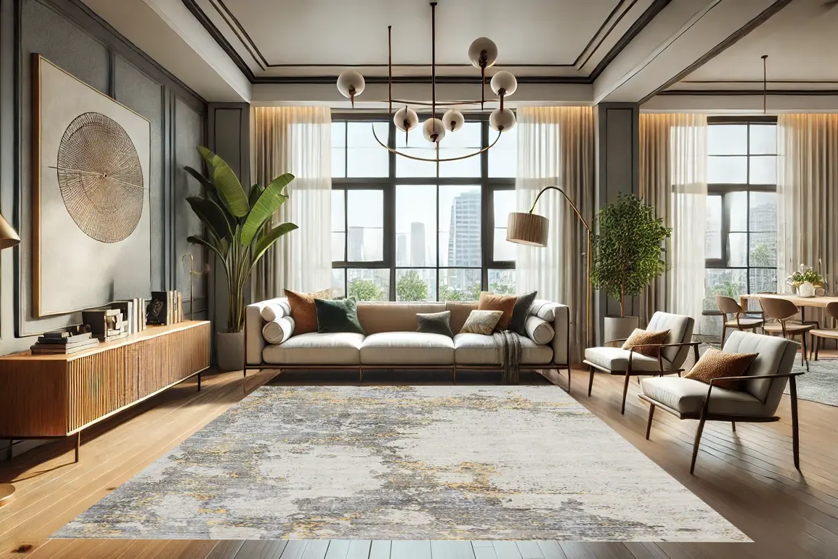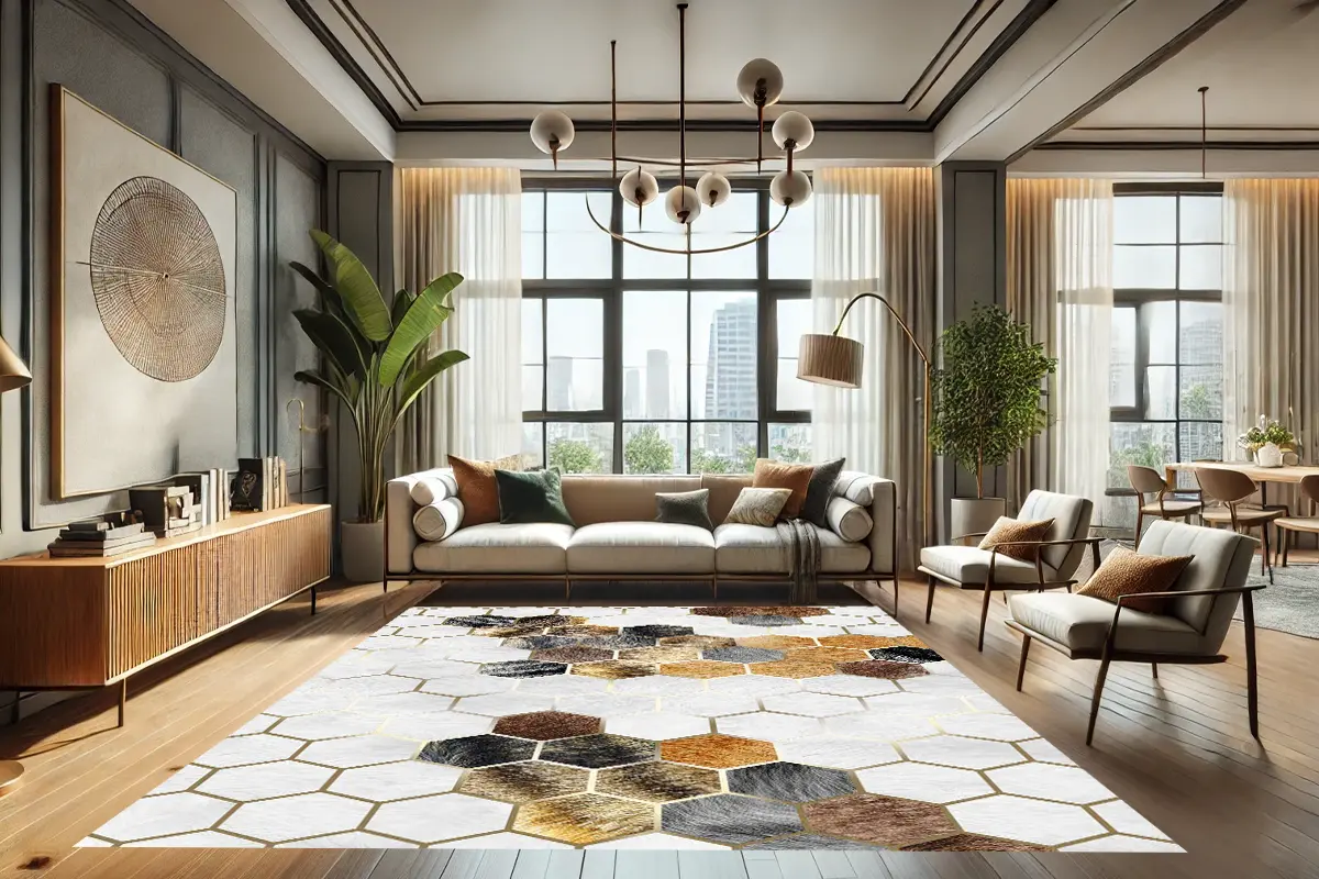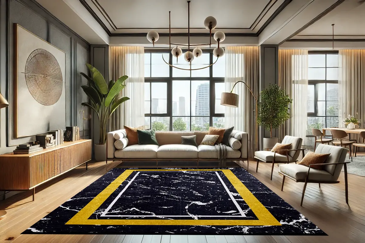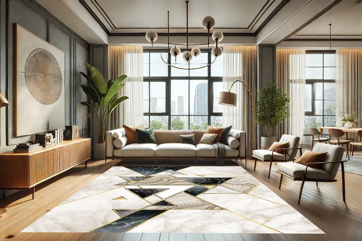 Geometrik Mermer Efektli Yıkanabilir Halı