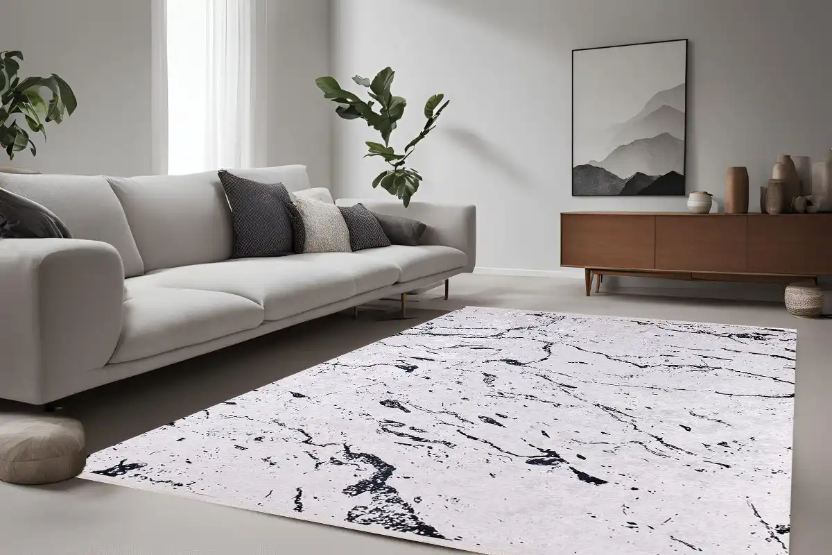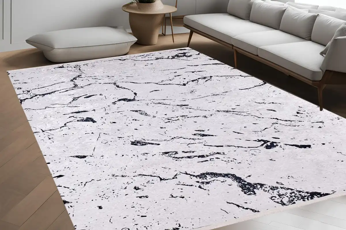 Siyah & Beyaz Mermer Yıkanabilir Halı