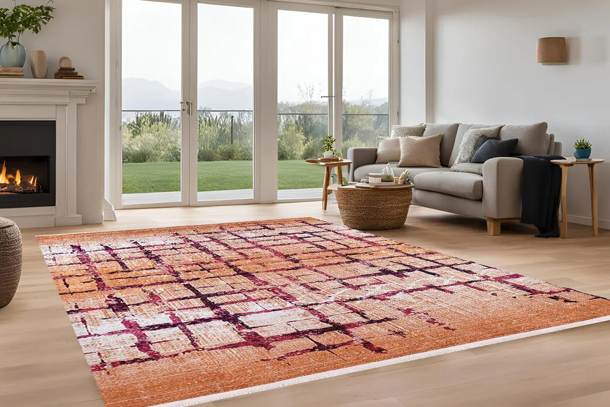 Soyut Izgara Tasarım Yıkanabilir Halı