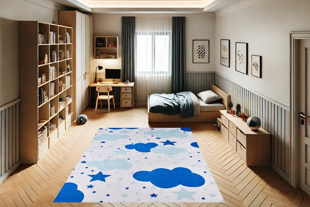 Bulutlu Yıldız Kovalamacası Çocuk Halısı
