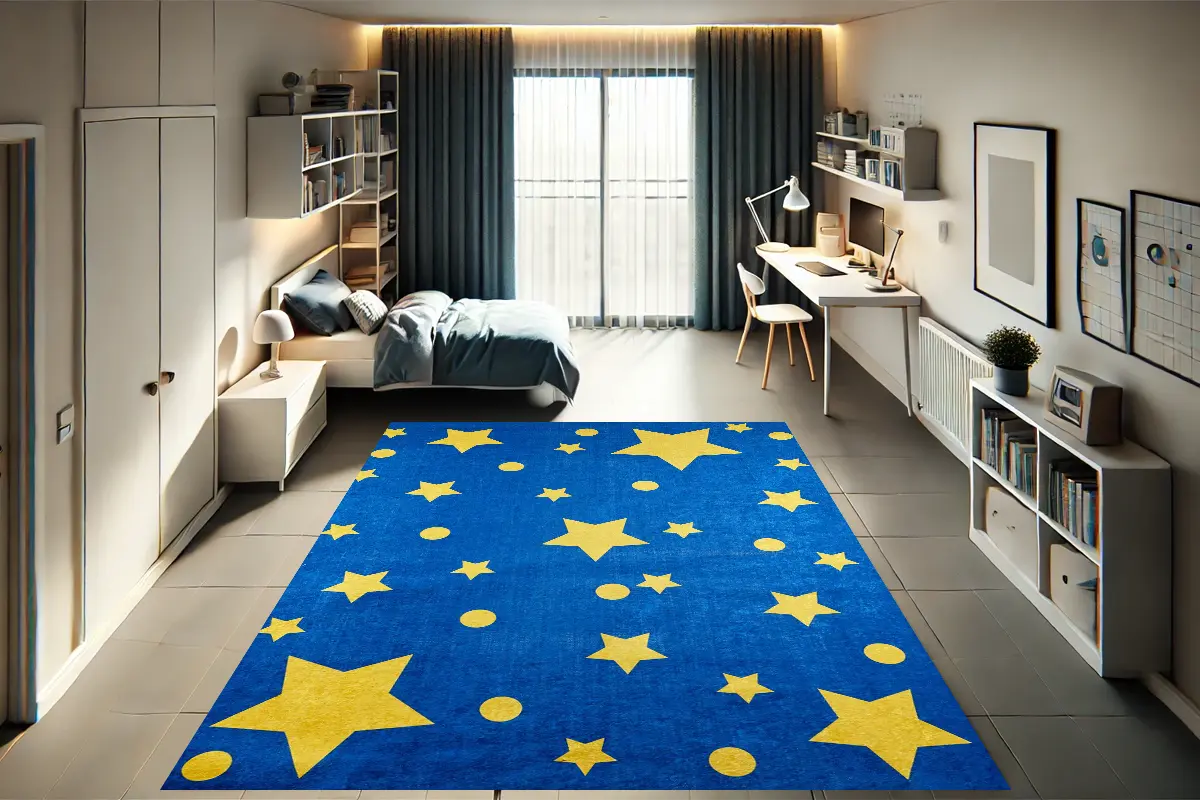 Altın Yıldızlı Gece Çocuk Halısı