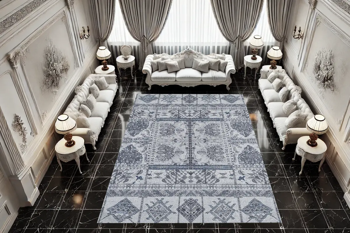 Gümüş Motifli Yıkanabilir Halı