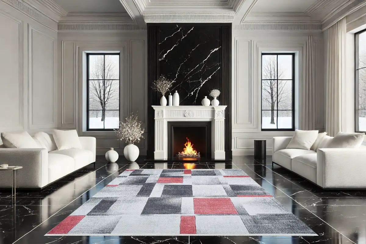 Crimson Blocks Yıkanabilir Halı