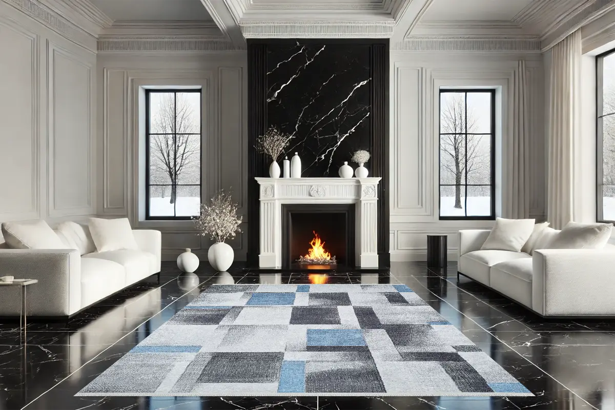 Blue Mist Blocks Yıkanabilir Halı