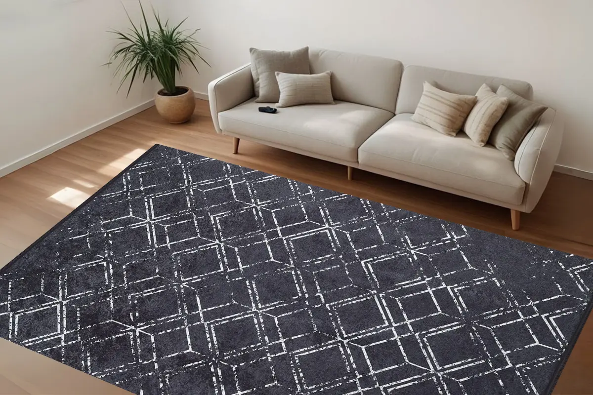 Grid Noir 3 Yıkanabilir Halı