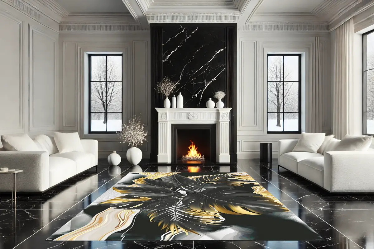 Altın Yapraklı Yıkanabilir Halı